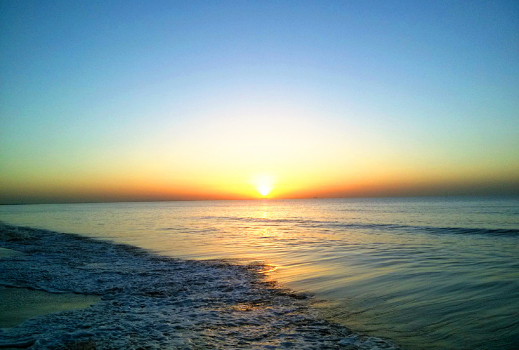 太阳此刻升得更高了,阳光在水中变幻出奇异的光彩