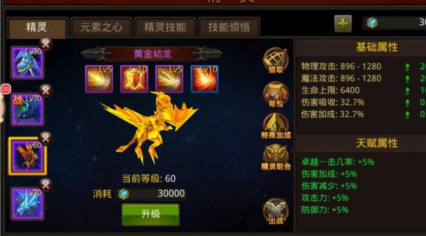 宠物、翅膀等养成系统为角色提供了极其可观的额外属性支持,是战力构成中不可或缺的组成部分,翅膀作为关键战力增长点,应优先使用绑钻进行升级,当翅膀成功进阶至5阶时将带来显著的属性飞跃与外观变化,宠物培养则需要同步推进其等级、资质与技能,为玩家提供额外的伤害或防御加成,精灵系统的组合搭配也需根据当前的战斗需求,灵活平衡攻击类与防御类精灵的数量以兼顾输出与生存。